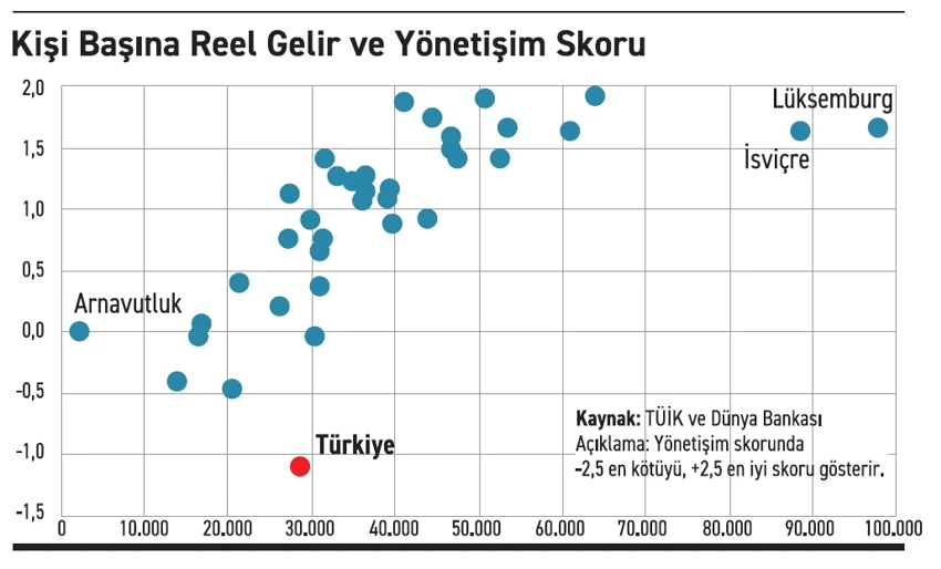 Kalıcı refah açısından esas olan unsurlar, büyümenin katma değeri ve kapsayıcılığıdır. Bunun için temel olan unsurlar arasında da kurumsal yönetişim esas belirleyici unsurlar arasında yer alıyor. Zira yazımdaki grafikte de göstermiş olduğum üzere, Türkiye, Dünya Bankasının hesapladığı yönetişim istatistikleri açısından Avrupa ülkeleri arasında maalesef en son sırada yer alıyor…
